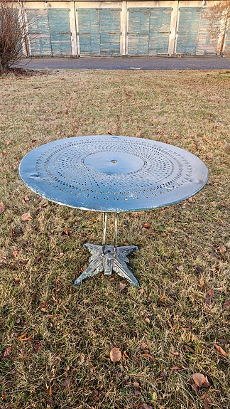 Fantastisk bistrobord med bordplade i zink. På foden er der messingplade med producentens navn. Fra omkring 1920'erne eller 1930'erne.