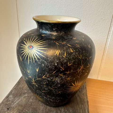 Retro vase orange med farvestænk ca 32 cm høj.Hvid indvendig