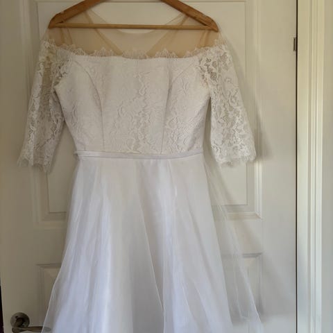 Brugt 1 gang ellers hængt i skabet . Flot 2 delt kjole fra Lilly i str 44 . Den kan både bruges som brudekjole eller konfirmations kjole
