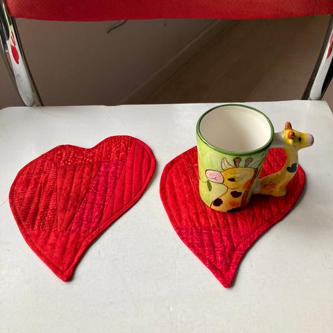 Søde hjerte dækkeservietter til krus eller kop, beskytter bordet på en fin måde. Kan vaskes. Sælges med 2 i et sæt.
