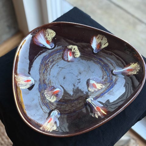 Fin lille vintage skål fra 1970 fra tyske Schönwald. Fin mørkegrøn farve med motiv af blomster og planter.