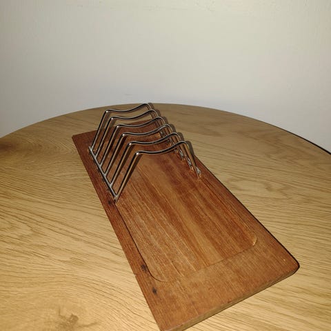 Flot stor brevholder i teaktræ og med grøn filt under bunden.