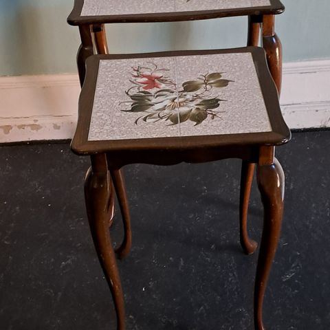 Indskudsbord, ukendt, teaktræ, 2 stk Udtræksborde