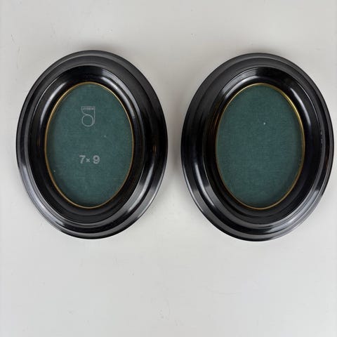 Oval Ramme i sort finish med gylden indvendig kant. Rammen har en bagplade med clips til fastgørelse af motiv. Velegnet til billeder eller kunsttryk i oval form.