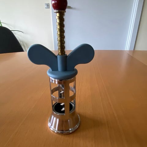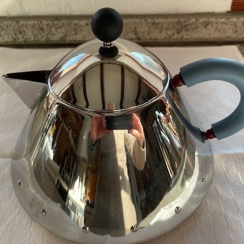 Rustfrit stål, Graves Anniversery, Alessi, 20th Anniversery 1985 - 2005. Michael Graves. Ekslusivt Jubilæums sæt i klassisk Alessi rustfri stål. Kaffe kedel, sukkerskål, flødekande og stor bakke med træ håndtag. Super flot. Klassisk Alessi design. Samleobjekt. Nyt.