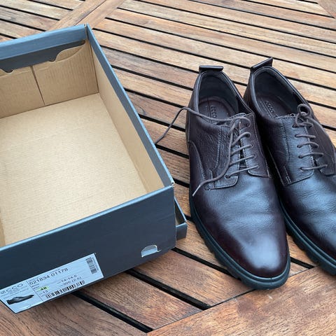 ECCO herresko i størrelse 42. Skoene er sorte og lavet i læder. Velegnet til formelle eller hverdagsbrug.