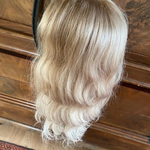 Helt ny og ikke engang prøvet blond paryk med mørkere rødder.
