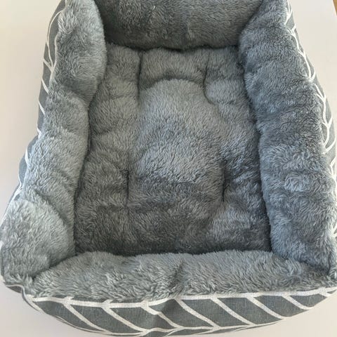 Jeg har til salg to TIAKI Kattesenge Frankie. De måler L 55 x B 50 x H 20 cm, De er aldrig brugt. Indvendig diameter er 50 cm.