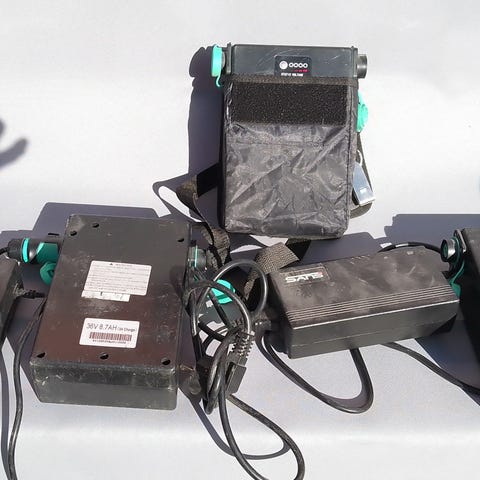 Samsung batteri til el-cykel med sort plastikkabinet. Batteriet har tilslutningsporte og er designet til genopladning og strømforsyning af elektriske cykler.36v-11.6ah418wh