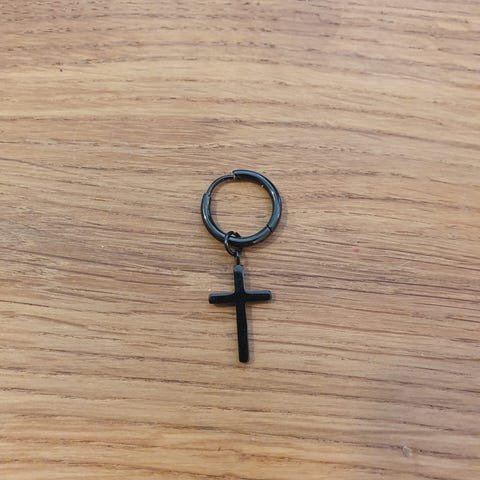 Ørering med guldfarvet kors.L på kors 2 cm, B 1,5 cm.Flot og velholdt.(Reol 10).