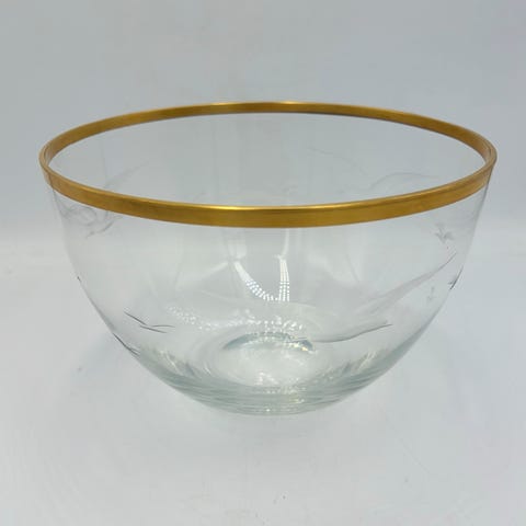 Mågeskål med guldkant1. sortering, nr. 43H 17 cm, B 25 cm.Flot, velholdt og uden skår, gå til varen for flere billeder.