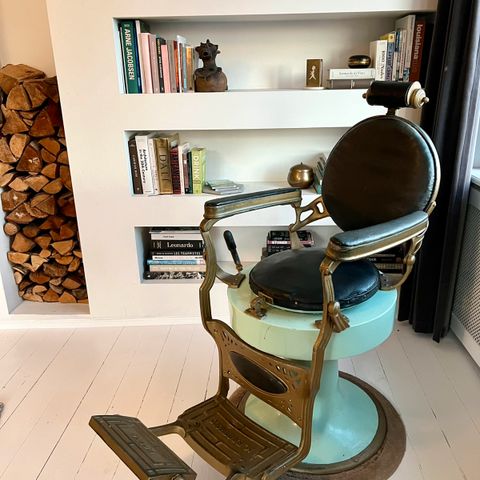 Vintage barber stol med sort læder - kan justeres i højden og dreje rundt.H 88 cm, B 51 cm, D 44 cm, sh 57 cm.Gå til varen, for yderligere billeder. Afhentes på Nørrebro, sendes ikke.(N).