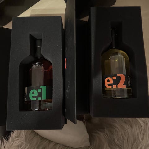 1 flaske Single Malt. Braunstein 'Cask Strength' Edition E1. Den første danske Single Cask whisky. Lagret på et 225 liters egetræsfad, der tidligere har indeholdt oloroso sherry. Langsomt har fadets aromaer af drue, mørk chokolade og rosin kærtegnet alkoholen og en blød, let frugtig whisky har udviklet sig. Produceret i 300 nummererede eksemplarer, denne nummer 293. 50 cl., 62,1%. 'Full Set' indeholder: flaske i box, karaffel og to smageglas, booklet om historien. Endvidere medfølger 50 ml 'Angel Spirit', d.v.s. det 'nyfødte' destillat, der kan demonstrere smagen fra den rene destillat uden fad og andre påvirkninger.