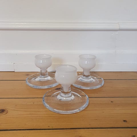 To styks fyrfadsstager i glas.H 23,5 cm, Dia 10 cm.Flotte og velholdte, uden skår. Gå til varen, for flere billeder.
