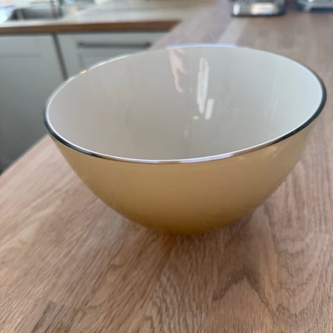 Holmegaard salatskål.H 17 cm, B 22 cm, D 22,5 cm.Flot og velholdt, uden skår. Gå til varen, for flere billeder.