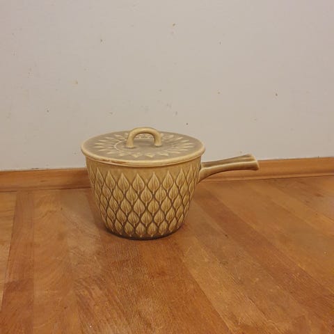 Gryde med låg fra Kronjyden/Relief.H 14,5 cm, B 21 cm, D 18 cm.Flot og velholdt, uden skår. Gå til varen, for flere billeder.
