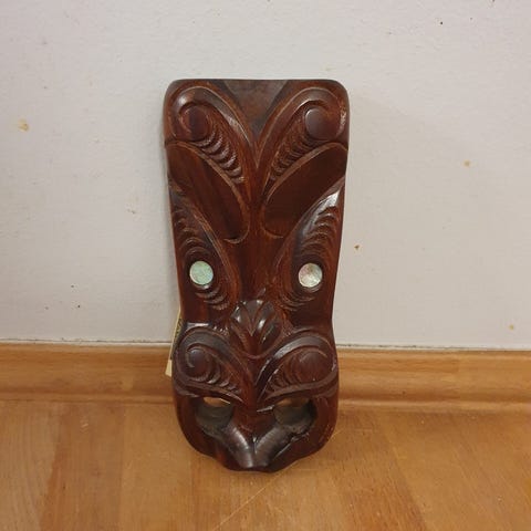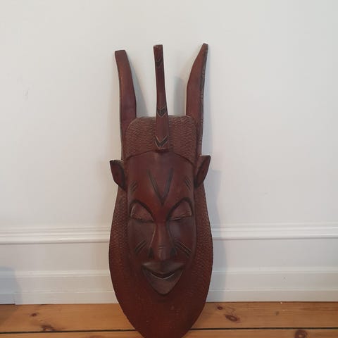 Træmaske af ældre dato.H 69 cm, B 24 cm.Flot og velholdt.Afhentes på Nørrebro, sendes ikke.