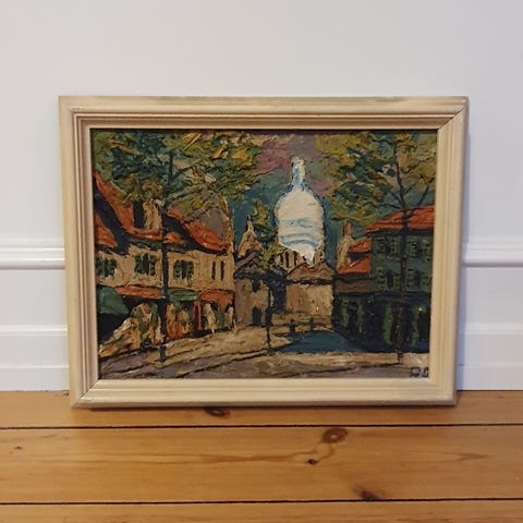Modernistisk oliemaleri, signeret af Preben Rasmussen fra 1960'erne.H 36 cm, B 45 cm,Flot og velholdt.