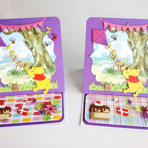 Str. på kortene er 14,8 x 14, 8 cm, og kan stå op. Der er skrivefelt indeni.