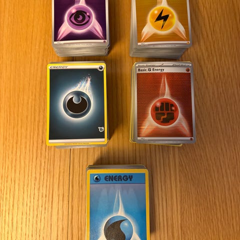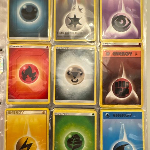 Gamle/vintage Pokemon energy kort i forskellig stand.