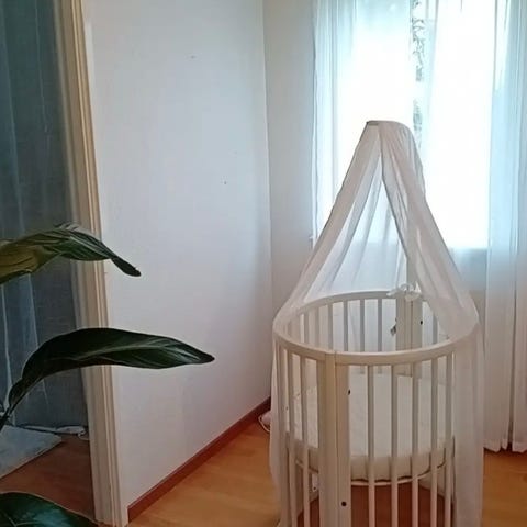 Materialer vuggeramme: Massiv bøg (ramme / ben) Lamineret birkefiner (madrasbase)