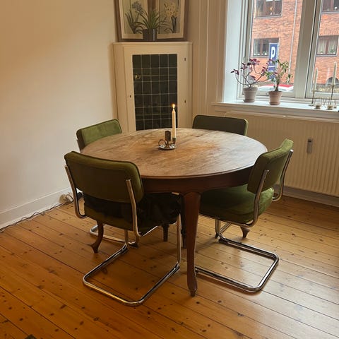 Et flot Omann Junior rundt spisebord I coba Mahogni model 55 .