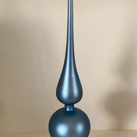 Topspir i glas, sølv, lidt afskaldning nederst. Med reflektorer på hver side. Højde 23,5 cm.cm.