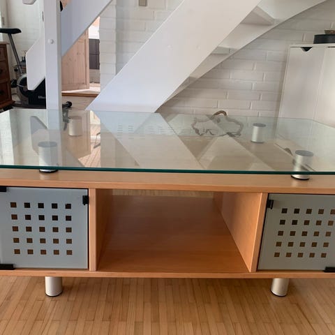 Bordets glasplade har en ridse, men kan dækkes af skål, lysestage eller lignende. Prisen er sat derefter.