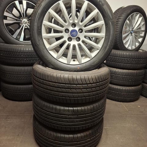 Et sæt fine fælge passende til Ford. Kommer fra en Mondeo fra før 7mdr 2017. Og det de den model tmps ventilerne passer til. Der vil være mulighed for at få 4 ventiler med til den nyere model hvis det er. Fremstår med minimale brugsspor. Monteret med 2 nye Continental sommerdæk. Og 2 næsten nye med ca 7mm. Se info og stand på billeder. Ref nr S285