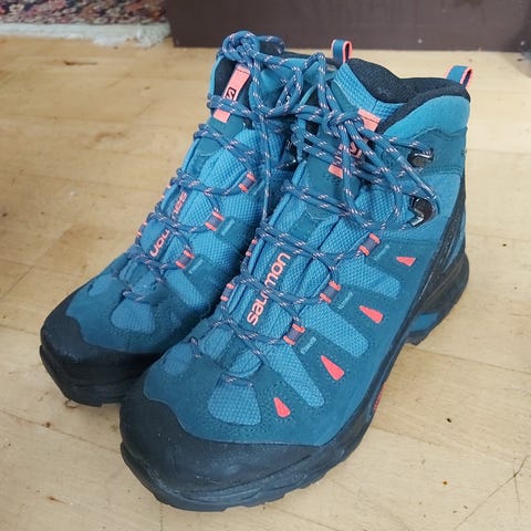 Sælger mine vandrestøvler, som jeg har været virkelig glad for: de er komfortable, har rigtig god støtte, er super lette, vandtætte, og mønsteret på sålen giver godt greb så risikoen for at glide er minimal.