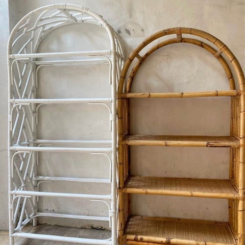Pæne, lette, smukke. Hylder / bogreoler H78-B70-D36. Bambus sider og hvid laminat 3 hylder. 2 stk. 450 kr. - 1 koster 240 kr.