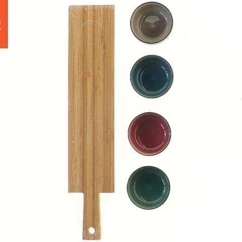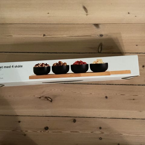 Porcelæn, tapas anretning, 3 porcelæns skåle god størrelse med tilhørende bambus træ serverings bakke