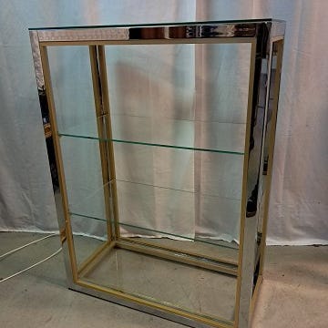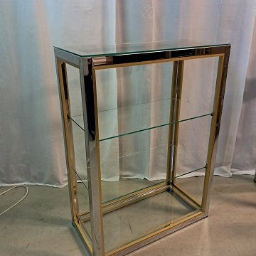 Forkromet reol i metal med glashylder, fra 1980erne.