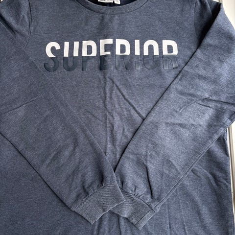Mørkeblå bluse med printede dyre kranier på. De er ikke så tydelige, da printet også er mørkeblå, men man kan godt ane dem.