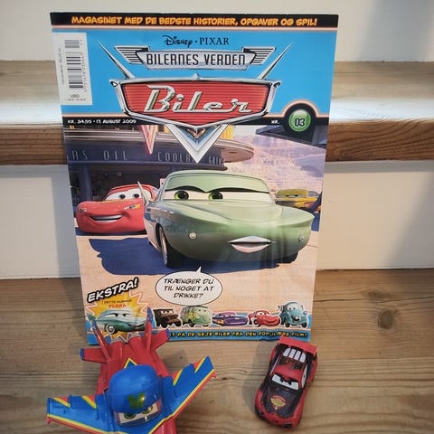 2 Biler fra Cars. Rød og grøn. Længde ca 15-16 cm. Den grønne har træk bagud og kør selv funktion. Pris 15 kr pr stk. Se evt også mine andre annoncer med ting til børn.