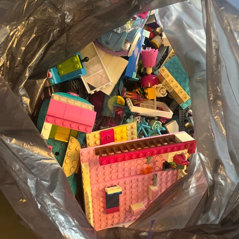 LEGO byggesæt med forskellige små figurer og tilbehør. Sættet indeholder et supermarked med boder, frugt, grøntsager, kager, indkøbsvogn mm.
