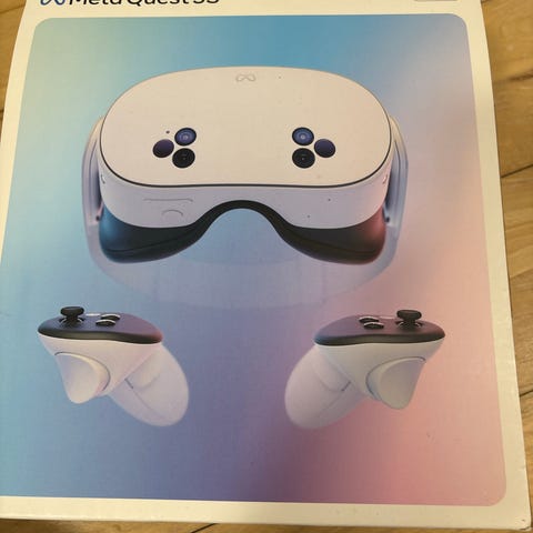 Meta Quest 3 VR-headset i hvid farve. Inkluderer headset, controller og tilbehør