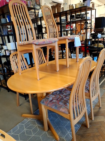 Møblerne ser ubrugte ud, men vi har fået oplyst, at de er 20 år gamle. Der er ingen brugstegn, ridser eller skrammer.