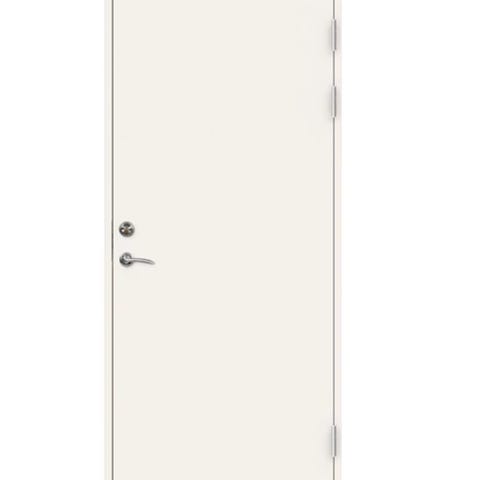 Hvid. Massiv brand- og lyddør der opfylder høje sikkerhedskrav, hvor der er behov for lyd- og brandisolering. Meget tung. Inkl. låsekasse, ekskl. greb, karm og indfatning.