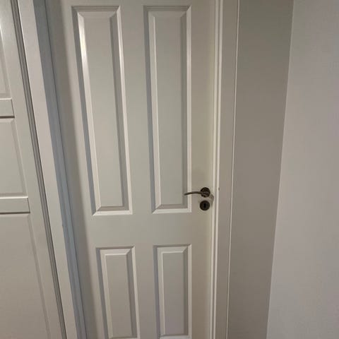 To døre i høj kvalitet sælges. Begge er ubrugte - i overskud efter renovering. Små skrammer - kan let repareres. Sælges samlet.