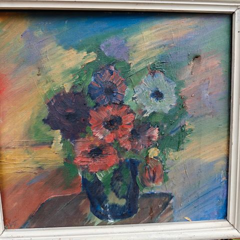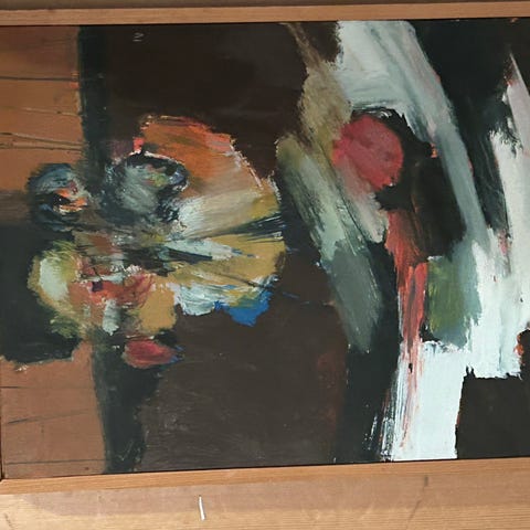 Niels Pedersen Passion maleri fra 2007. Farverigt og abstrakt kunstværk med forskellige motiver og elementer. Maleriet er signeret og dateret på bagsiden.