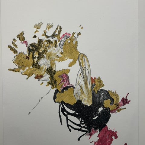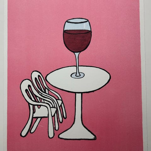 Andreas Schulenburg original litografi fra 2012 med motiv af bord, bænk og flaske. Nummereret 71/230. Farverne er primært brune og blå.