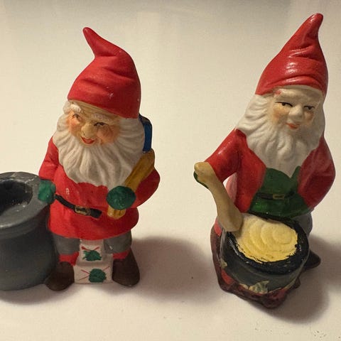 Velholdte nisselysestager i porcelæn , 8 cm høje , passer små julelys - nok fra 70’erne