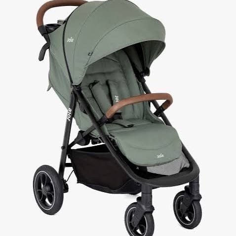 Joie barnevogn med hvide mønstre indvendig og pæn mørk farve udvendig