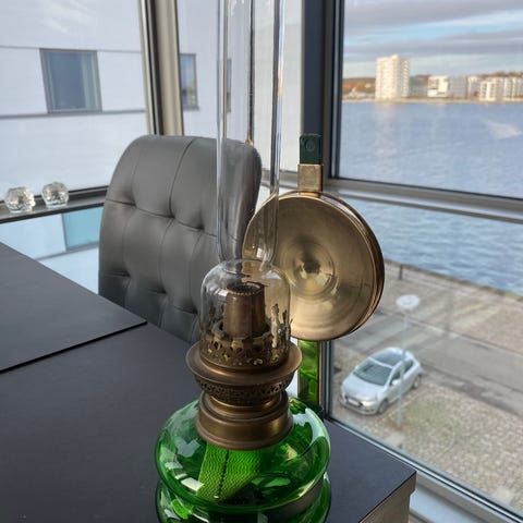 Petroleumslampe, messing ca. 100 år gammel