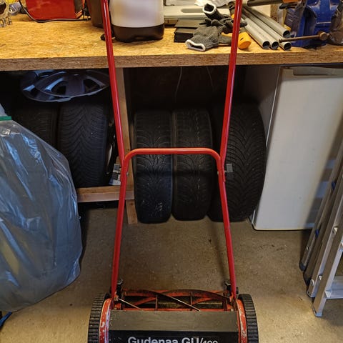 Plæneklipper Gudenaa GU/400 med græsopsamler i fin stand.