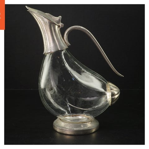 Denne glaskande har et elegant, mønsteret design med en snoet hank. Den klare glasoverflade er udsmykket med et prikket mønster, hvilket giver kanden et klassisk og tidløst udseende. Kanden er ideel til servering af drikkevarer eller som dekoration. Størrelsen på kanden er 16,5x7,5 cm.