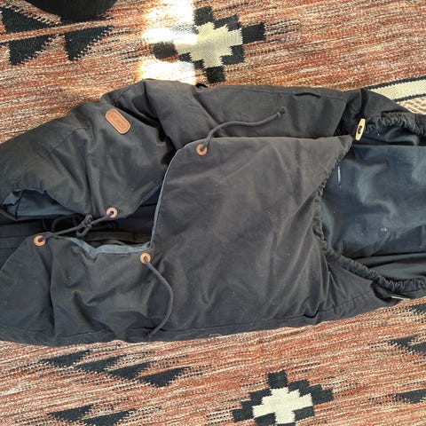 Smart sort Voksipose med camouflage farvet foer og klikspænder. Voksiposen er “aktiv versionen”, så den er mere praktisk at have med at gøre på farten, men stadig med den klassiske varme ulddyne.