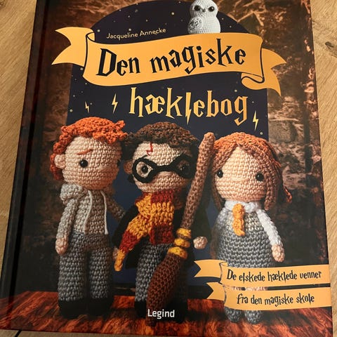 Legind Vores Bedste Hæklede Venner bog med opskrifter til hæklede figurer som dyr og dukker. Indeholder detaljerede instruktioner til forskellige hækleprojekter.