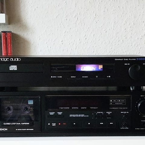 Fint lille minianlæg med cd-afspiller. Har nogle ridser på toppen men ellers pænt